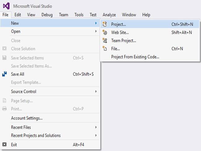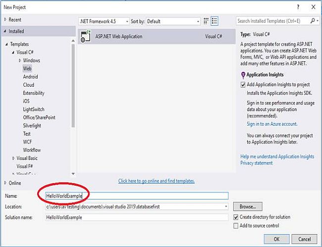 Visual C#-> Web -> ASP.NET Web Application-> write Project Name-> OK.